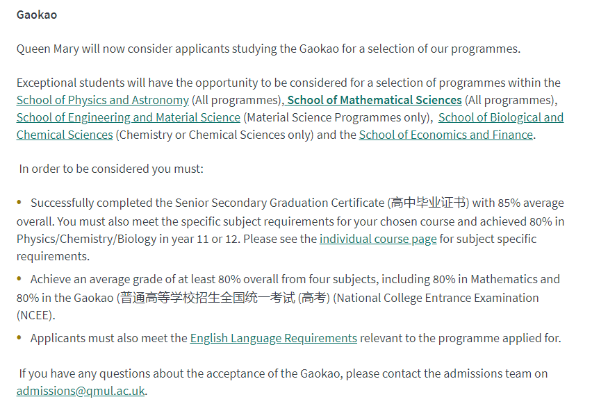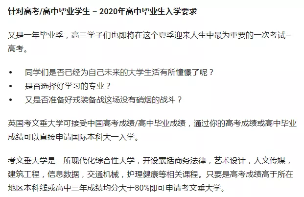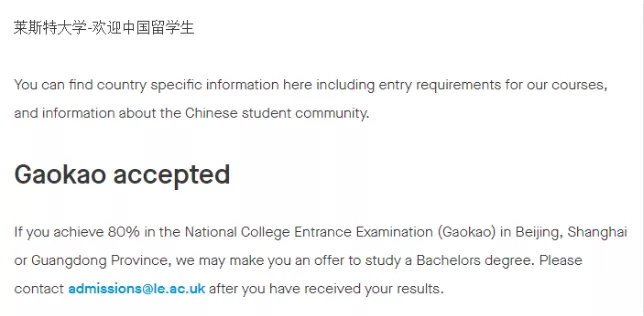 但现在,英国越来越多大学宣布中国学生可以用高考成绩申请本科,下面我们就来看看,那些接受高考成绩直申的英国大学,对高考成绩有什么要求?