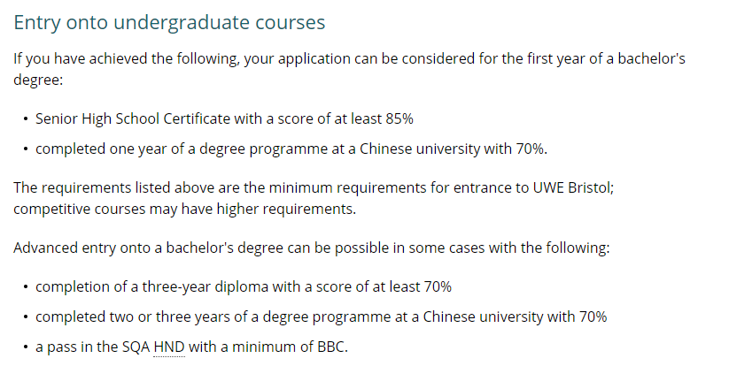 2.本科Typical entry requirements要求高考成绩75-82%外加会考成绩85%。