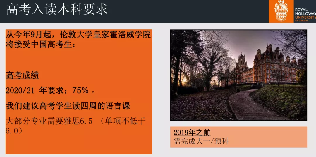 1.2019年接受中国高考学生,要求高考总成绩达到75%,并建议读4周语言课。