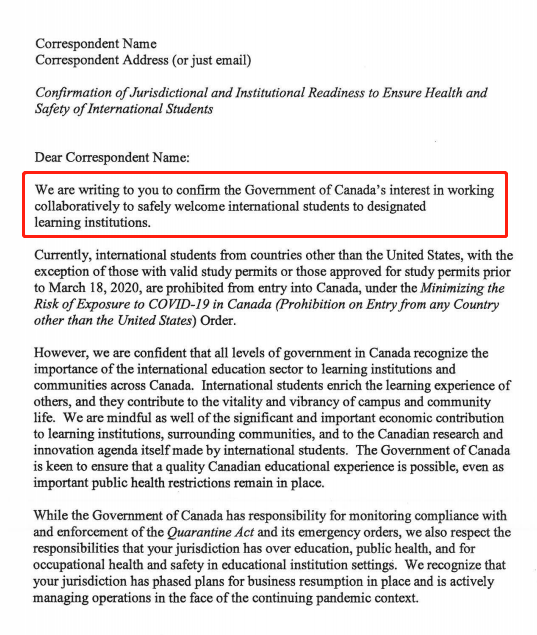 CIC NEWS曝光了加拿大移民部长和加拿大卫生部长,联署写给各区政府以及加拿大所有指定教育机构(DLI)的一封内部信件。