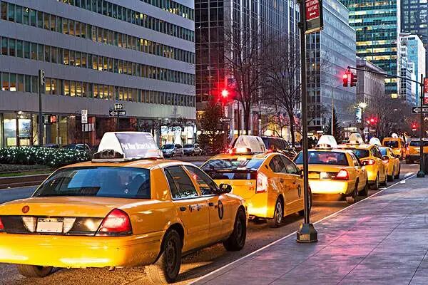 纽约的黄色出租车家喻户晓,1.5刀起价(晚上8点后是2刀),然后按每公里0.8刀计算。如果因为经过高速公路而交费,这些费用也会加在乘车账单上。