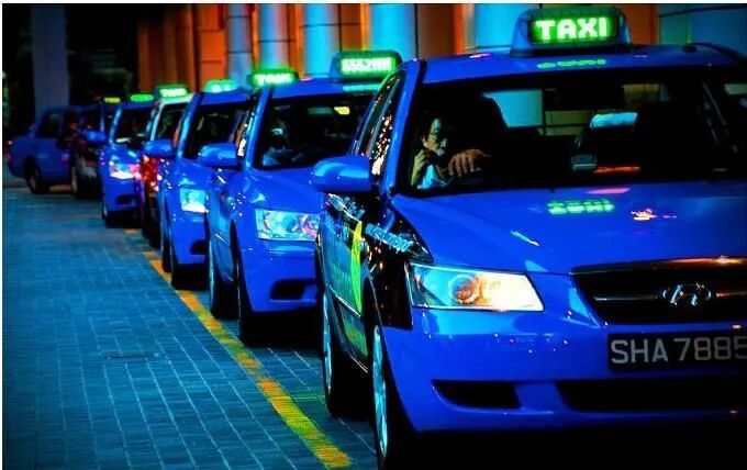 在出租车站点等待,或者在路边拦截,机场、购物中心外面都会有很多出租车。