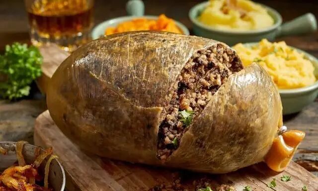 Haggis也称为“哈吉斯”,是传统苏格兰名菜,由羊胃、羊内脏、燕麦、洋葱、高汤等食材做成,实际上就是羊杂碎。