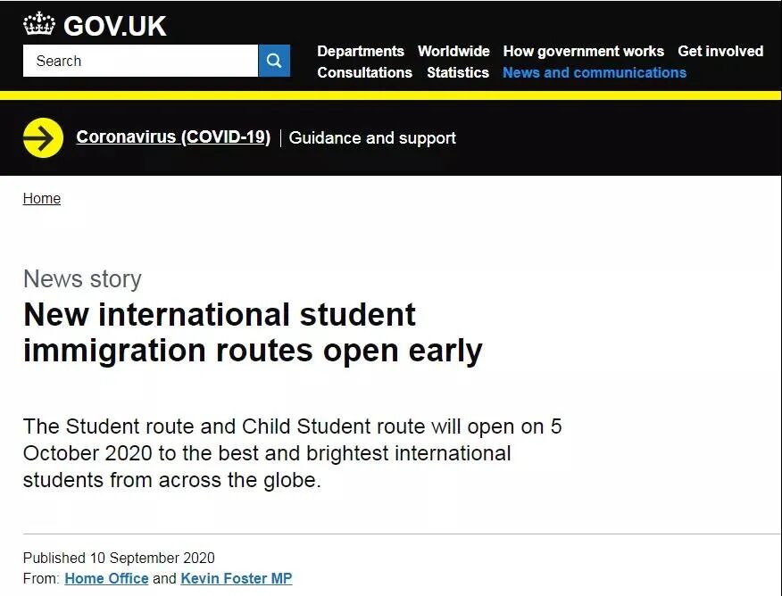 英国政府官网宣布:英国新学生签证系统将提前开放,在10月5日正式开启!