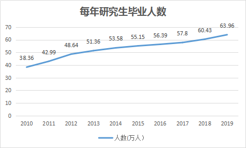据国家统计局数据,国内研究生毕业生从2010年的38.36万人次已增长到2019年的63.96万人次。